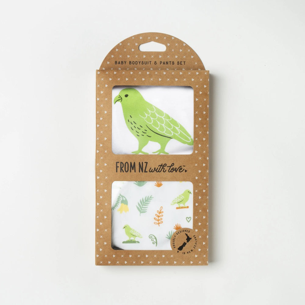 This bodysuit and pants set has been created with the New Zealand baby in mind. Perfect as a present for a loved one overseas or to keep for your precious little bundle.