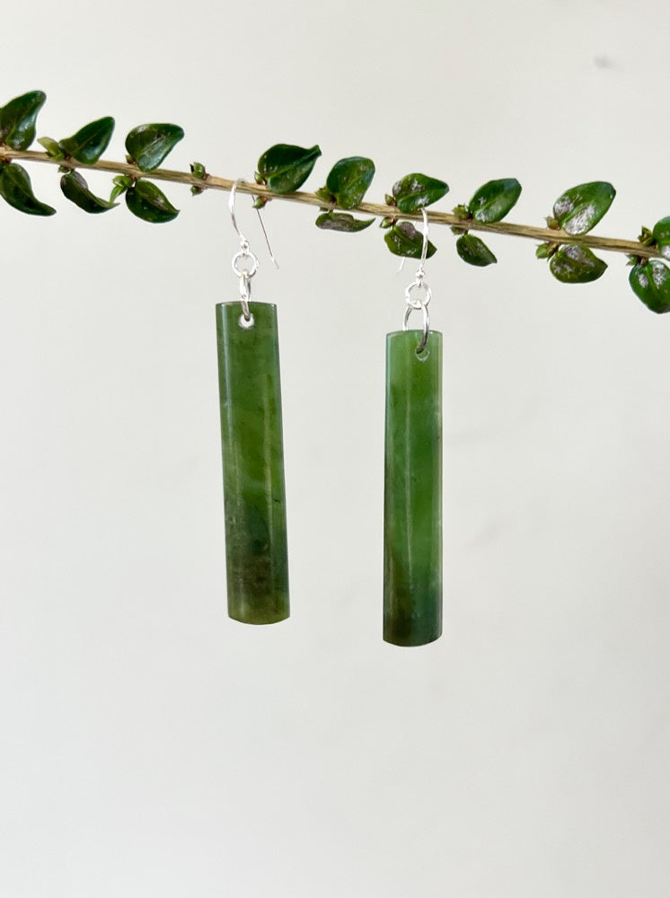 NZ Greenstone / Pounamu Flat Drop Earrings