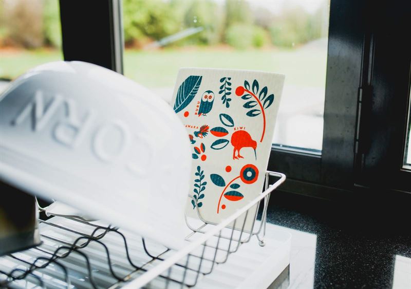 From the forest and back again. Environmentally friendly printed Swedish dishcloths featuring kiwiana designs. Made from natural materials - 70% cellulose (from FSC certified forest) and 30% cotton.