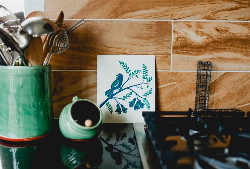 From the forest and back again. Environmentally friendly printed Swedish dishcloths featuring kiwiana designs. Made from natural materials - 70% cellulose (from FSC certified forest) and 30% cotton.